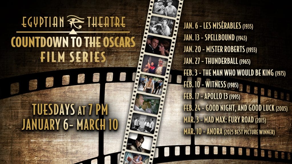 Join the Egyptian Theatre’s countdown to the Oscars with this film series celebrating Academy Award nominees and winners through the decades. Shown on the largest movie screen in DeKalb County, you don’t want to miss this exciting lineup.