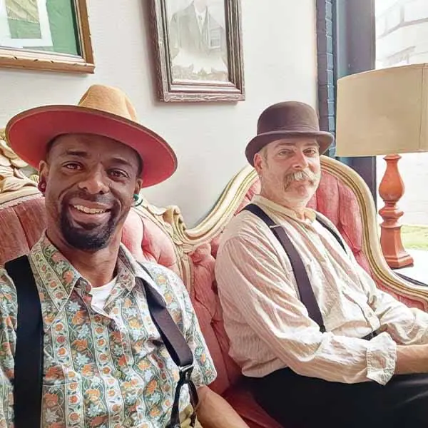 “Cherry & Jerry” is Isaac Cherry on percussion and Jerry Rabushka on piano. Based in St. Louis, the duo is also part of the larger “Ragged Blade Band,” and has toured music of the ragtime era throughout a several state areas. They’ve found this music is great for good times – brewpubs, wineries, markets, festivals, and more! They’ve appeared in the Big River Steampunk Festival in Hannibal, MO, the Oddities and Curiosities Expo in Chicago and Tulsa, the RAGBRAI bicycle event in Iowa, and the St. Louis World’s Fare in their hometown.