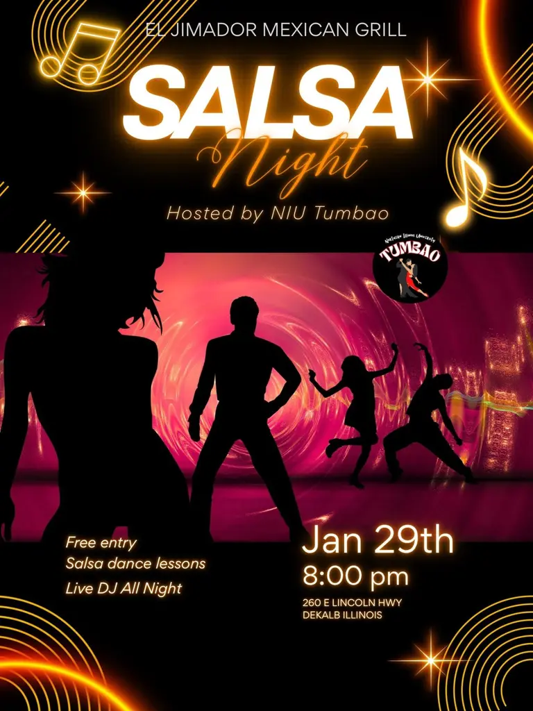 Join El Jimador Mexican Grill and NIU Tumbao for a dance demonstration from 8-9pm and then practice your dance moves afterwards with DJ NRG.