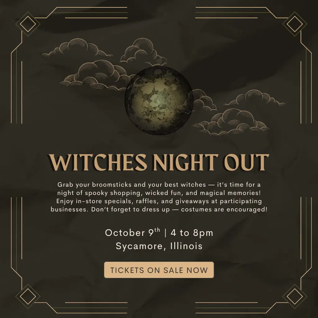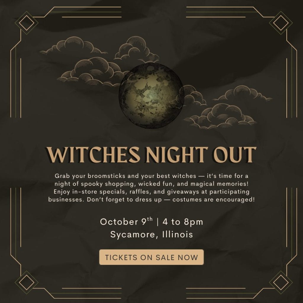 Grab a few of your favorite witches for a fun shopping event in Downtown Sycamore on October 9 from 4 to 8pm.